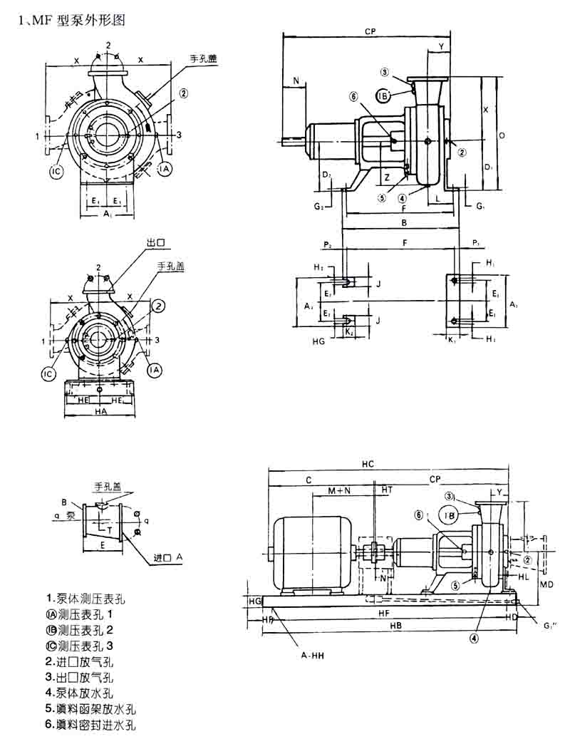 九、MF型泵外形圖及安裝尺寸表