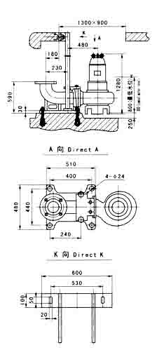 Note:refer to model WQ submersible sewage pump for the installation dimensions of model JYWQ auto-stirring sewage pump. |