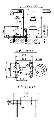Note:refer to model WQ submersible sewage pump for the installation dimensions of model JYWQ auto-stirring sewage pump. |