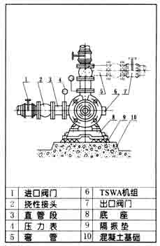 TSWA型泵安裝極為方便,可選擇配帶鑄鐵底及隔振墊安裝,減少振動(dòng)及噪聲,并方便維修。