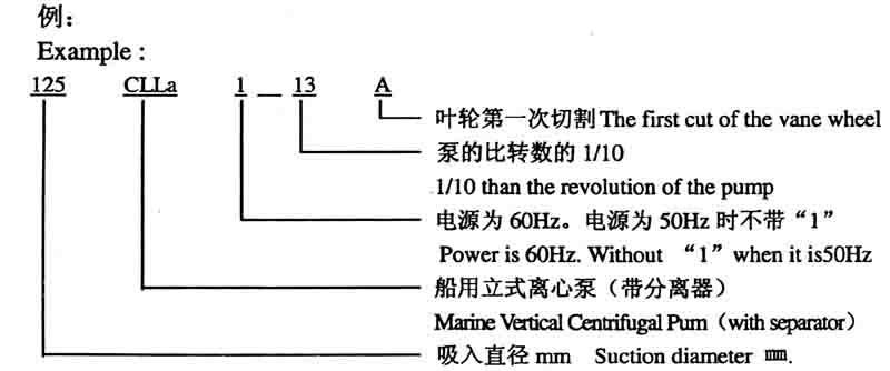1.1 CLLa系列船用立式離心泵是我公司參照國外技術(shù)制造并經(jīng)中國船級社認可的產(chǎn)品。本產(chǎn)品是用來輸送海水、淡水、生活污水,作為冷卻、消防、艙底壓載和其他一般排水用,也可用于工業(yè)和城市供水。輸送介質(zhì)溫度應(yīng)低于80℃。